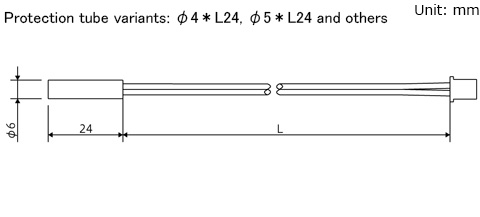 - A bare thermistor chip is sealed in a copper protection tube